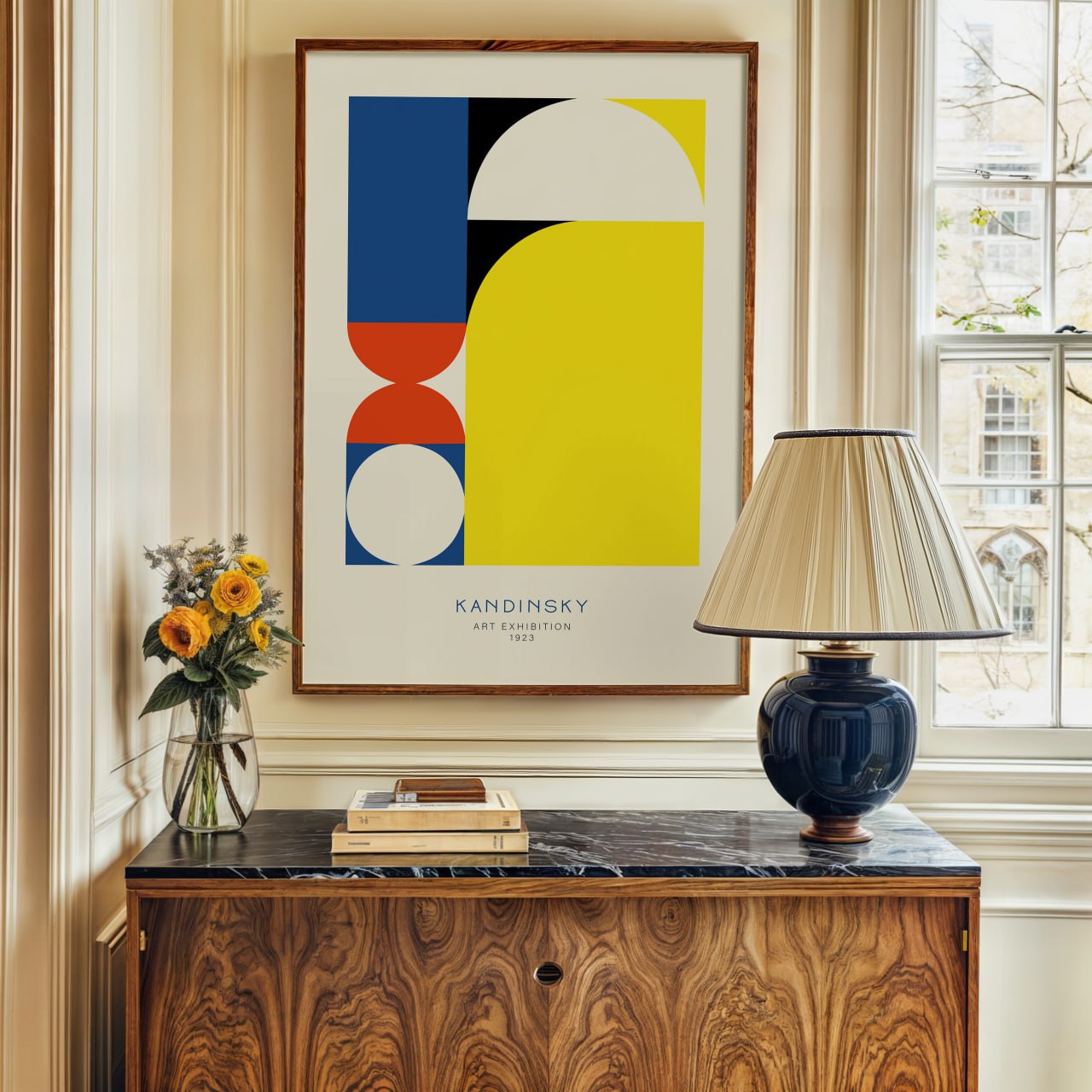 Eleva tu espacio con el póster Bauhaus azul y naranja, una impresión de alta calidad perfecta para tu galería de arte mural. Este estampado Bauhaus complementa sin esfuerzo la decoración nórdica minimalista, aportando una elegante fusión de colores y líneas limpias a su entorno con una artesanía superior.