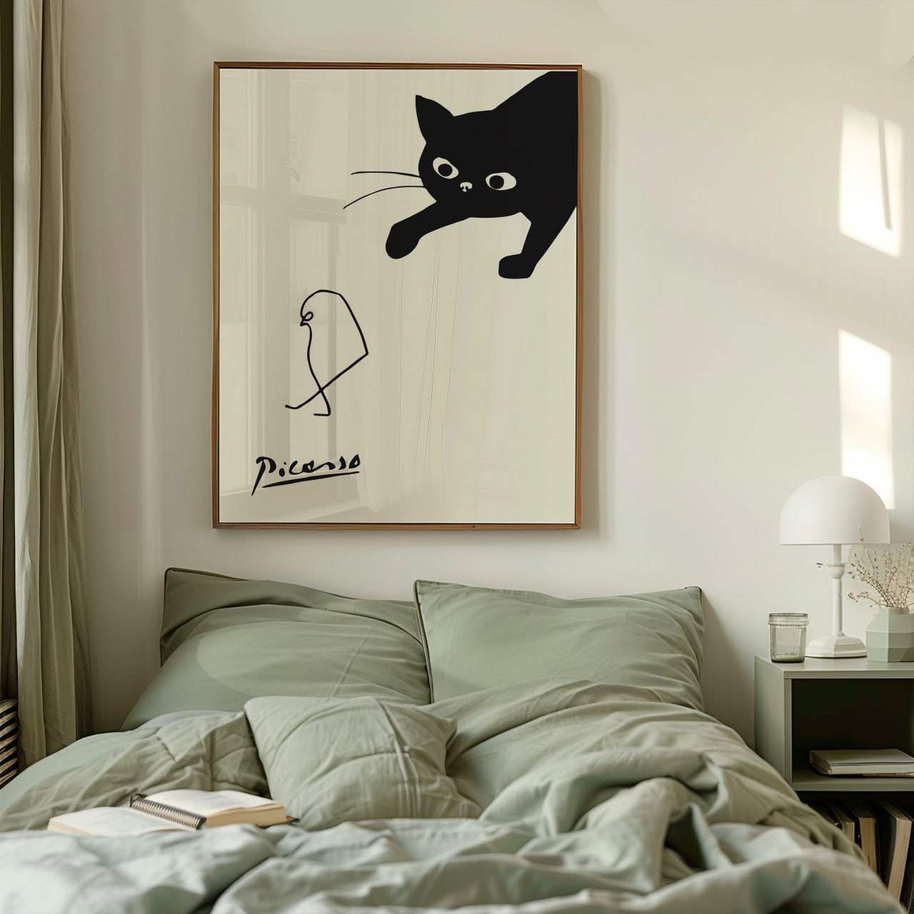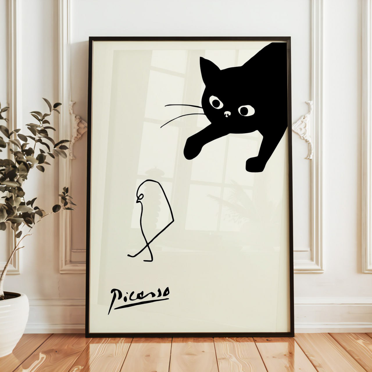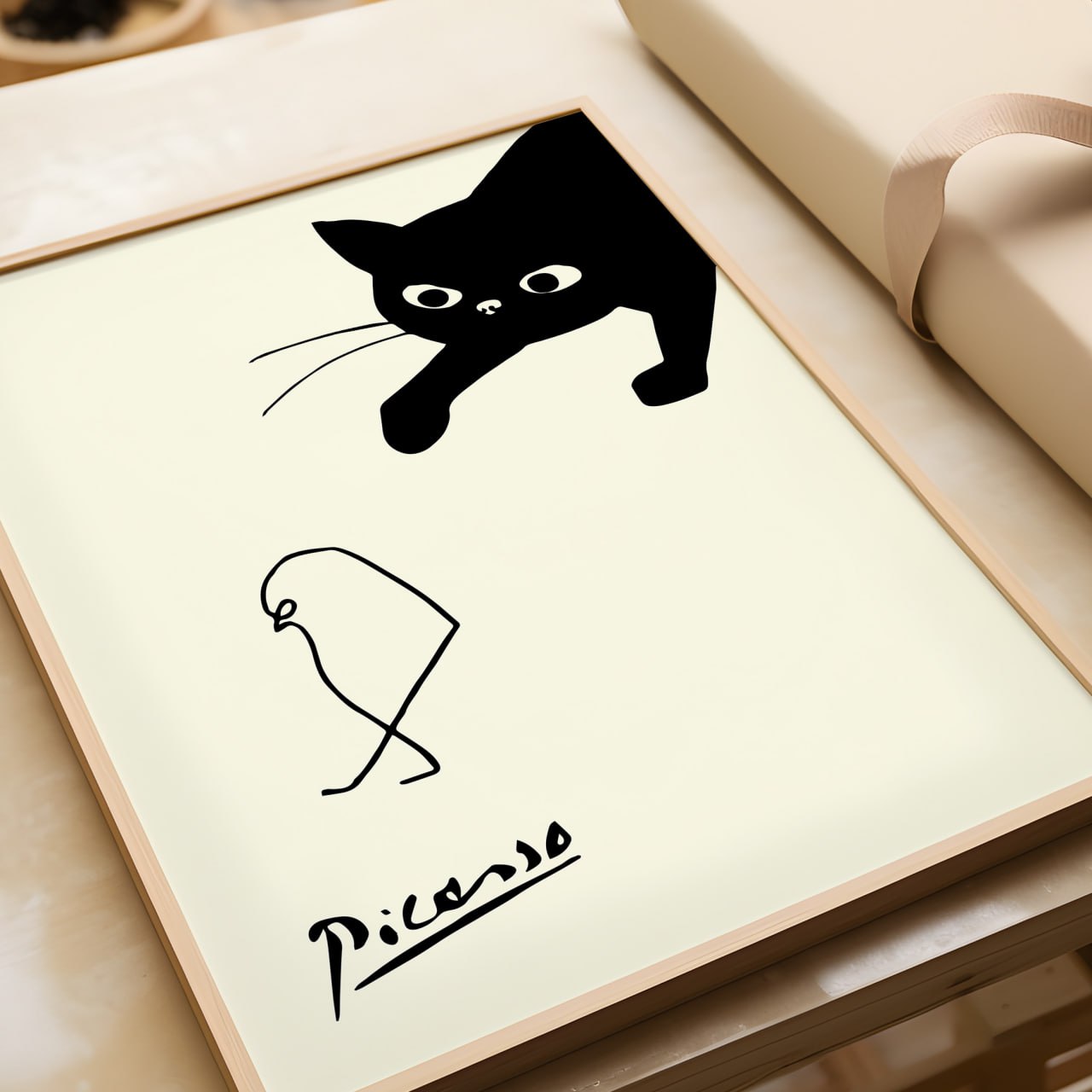 Picasso Cat and Bird Print | Minimalist Modern Animal Art