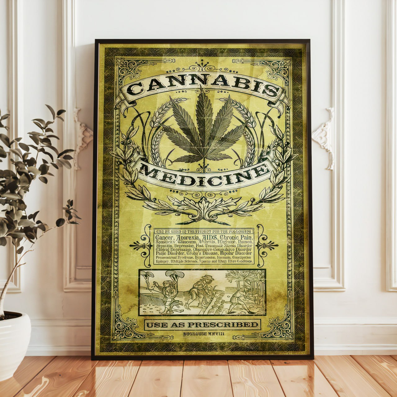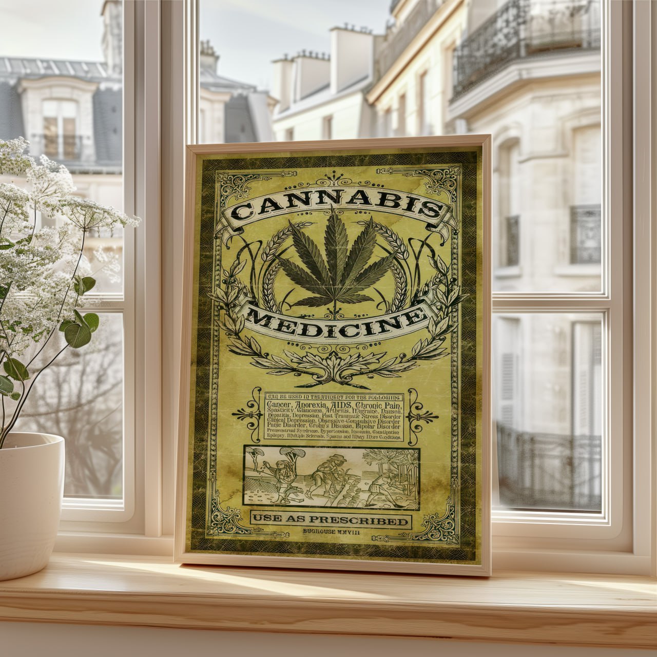 Vintage Cannabis Medicine Print | Antique Apothecary Wall Art